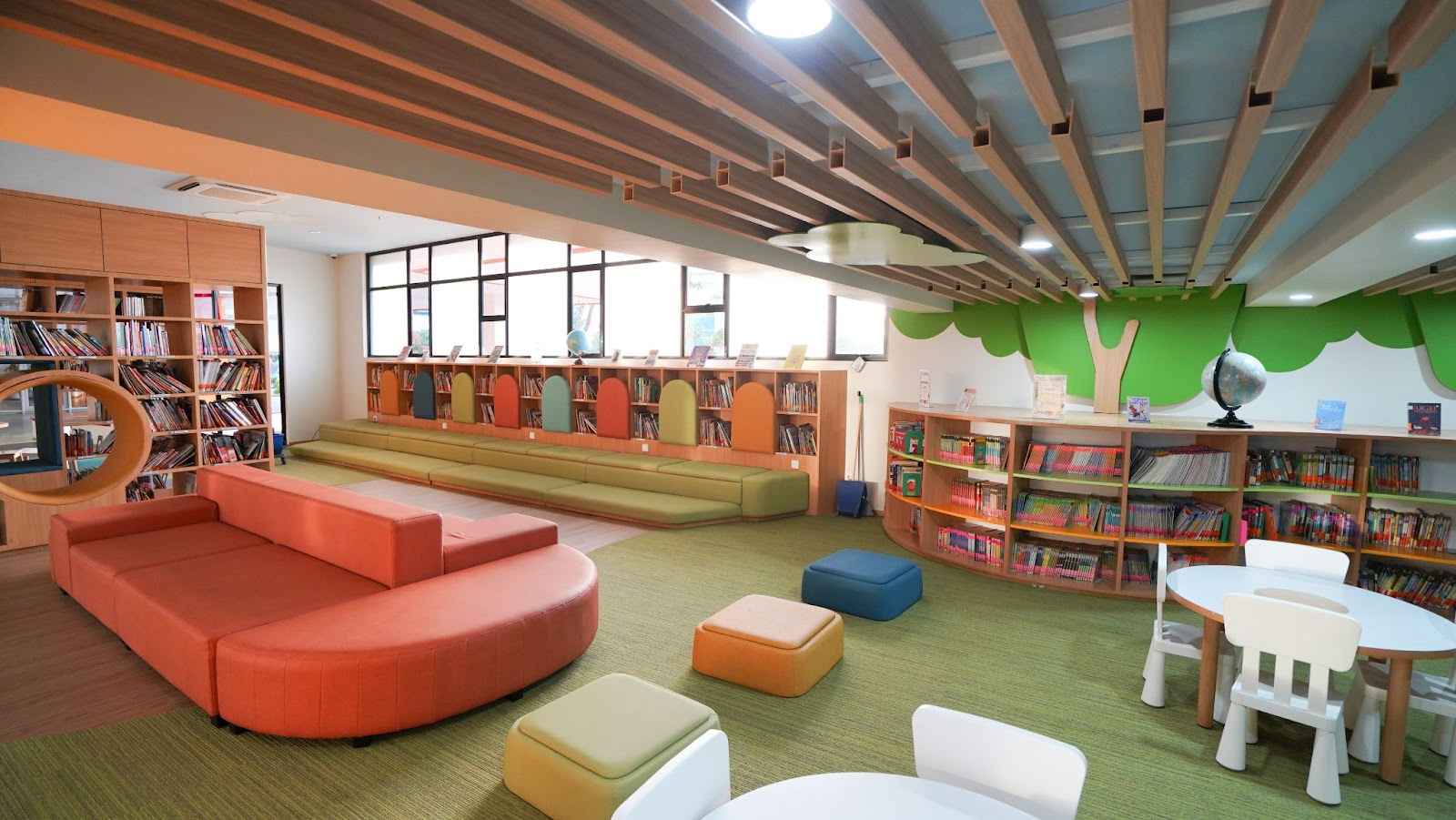 · Terdapat area penyimpanan tas, papan absensi, sudut baca, dan area terbuka untuk Circle Time.