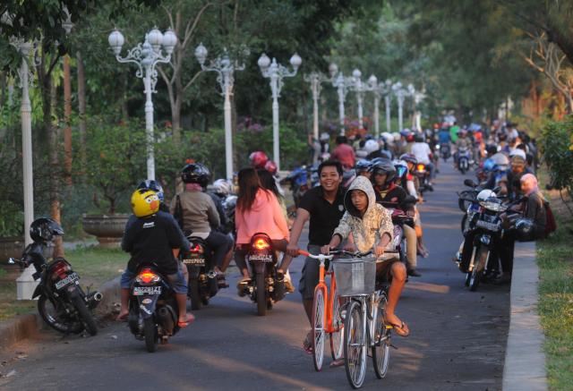 Ada juga yang memilih mengunjungi Taman Kota dengan beberapa fasilitas bermain dan pepohonan rindang yang meneduhkan pada sore hari.