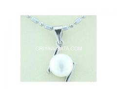8mm GRACEFULL LADY WHITE PEARL PENDANT & RHODIUM ANCHOR NECKLACE