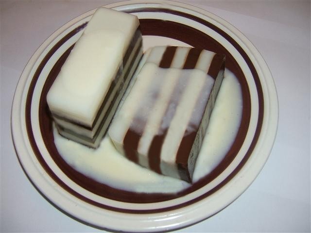 - Lakukan lagi pada sisa adonan agar-agar cokelat dan agar-agar warna putih.