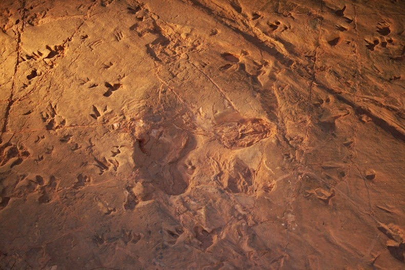 Dengan demikian mereka meninggalkan jejak kaki lumpur lunak yang kemudian mendapat terkubur di bawah pasir dan lumpur sebagai tingkat danau sungai yang kerap naik turun.